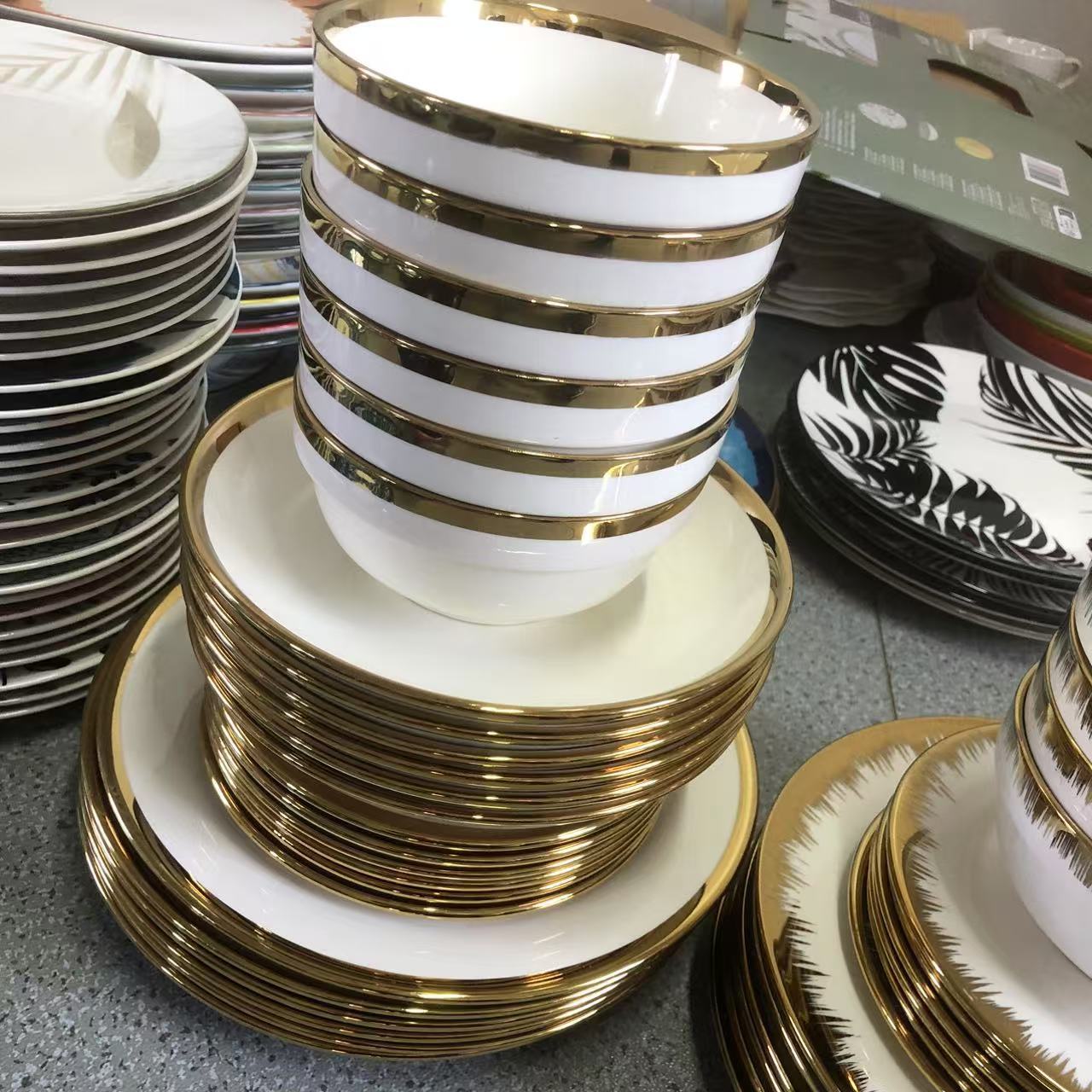 18-Piece Gold-Rimmed Ceramic Dinnerware Set