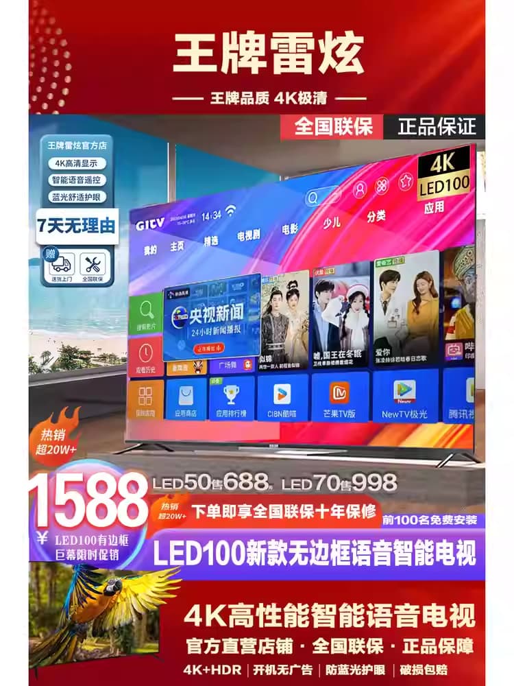 8K King of Thunder Frameless Ultra HD. QLED Frameless Ultra-thin 4K Eye Protection Voice and Network Version