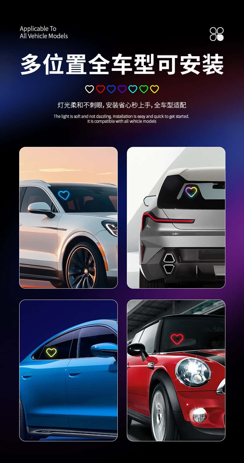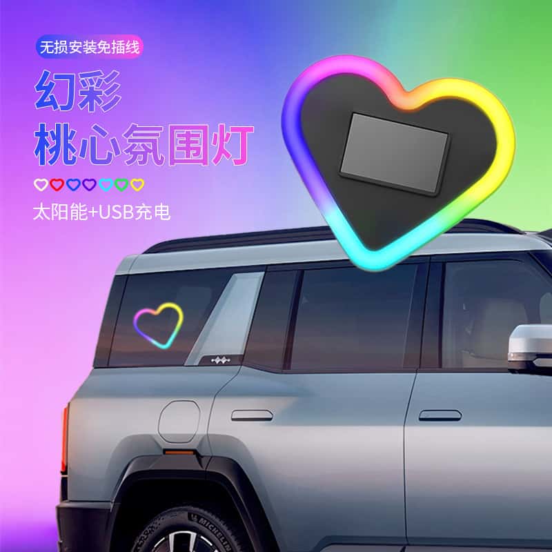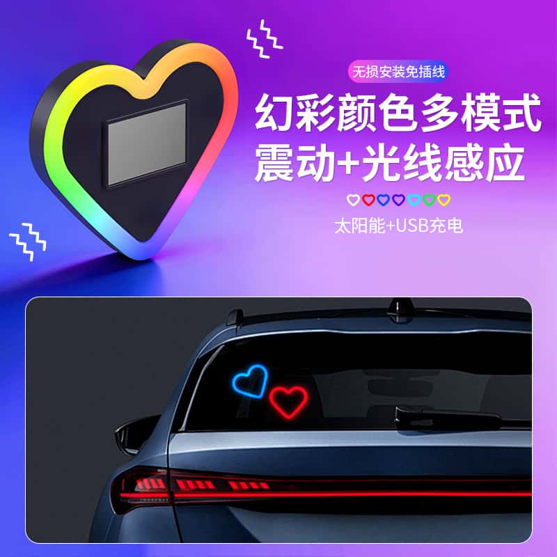 Car LED Solar Heart Ambient Lights, Colorful Triangular Window Decorations, Neon Lights, Car Interior Decorations