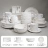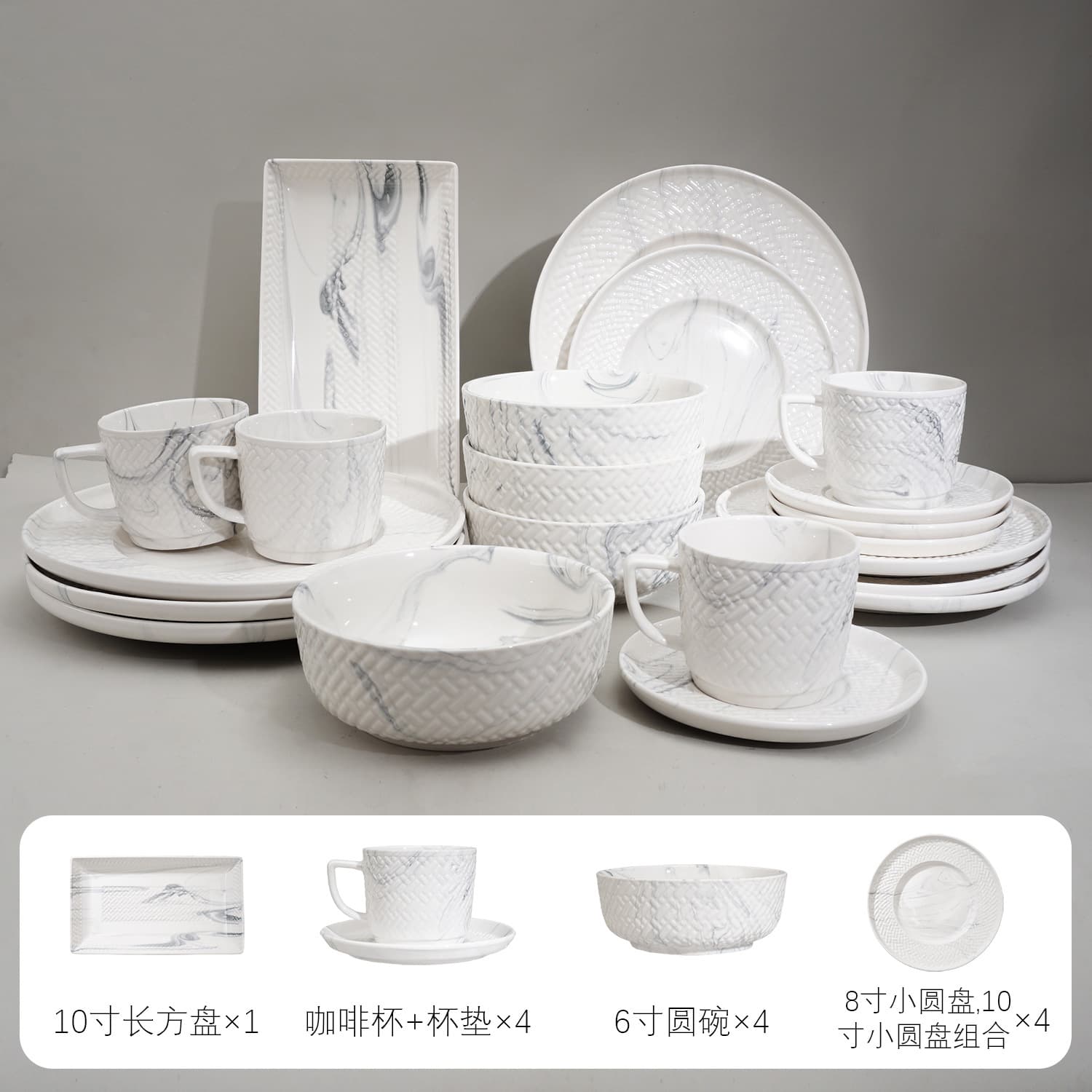 Ceramic Dinnerware Set Coffee Cup Mug Bowl Plate Marble Pattern Japanese Style Bamboo Woven High White Porcelain Bamboo Woven Set