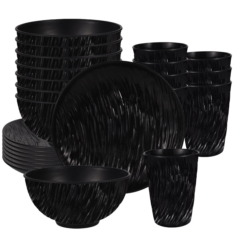 Cross-border Amazon Rock Texture Plastic PP Plates, Bowls, Cups, and Dinnerware Set (18/24pcs) – Wheat Straw Bowl, Plate, and Dish Set