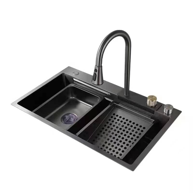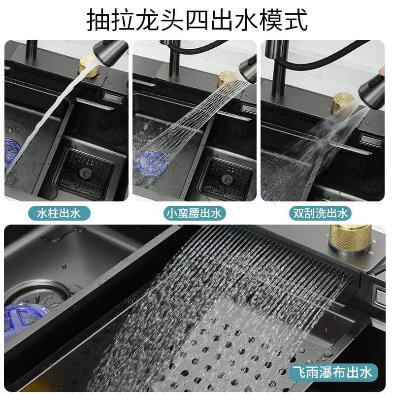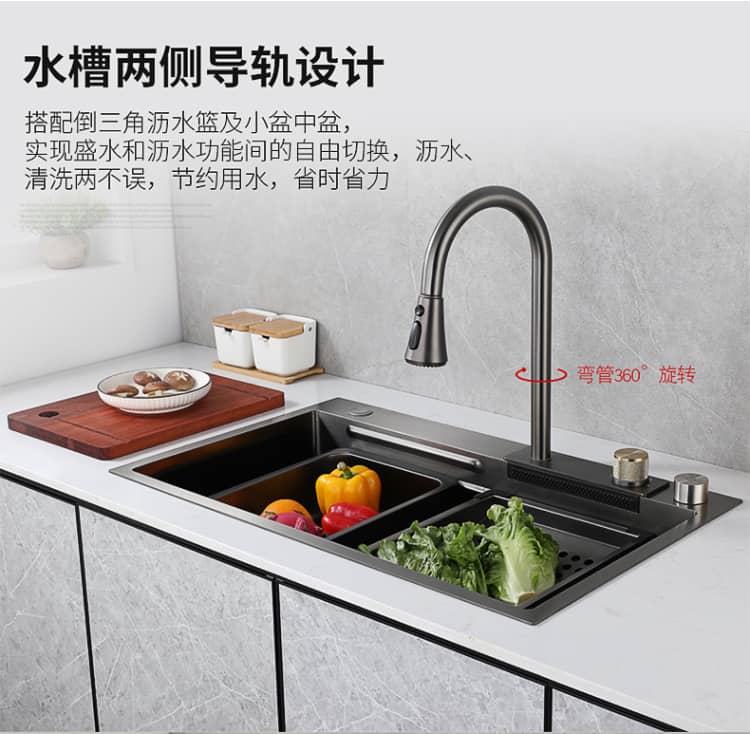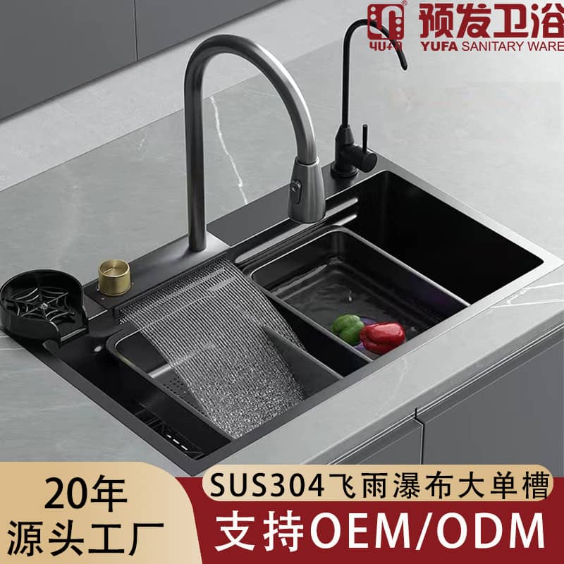 Flying Rain Sink Kitchen Waterfall Faucet Vegetable Washing Basin Black Fine Steel Stainless Steel Sink Net Red Japanese Style Large Single Sink