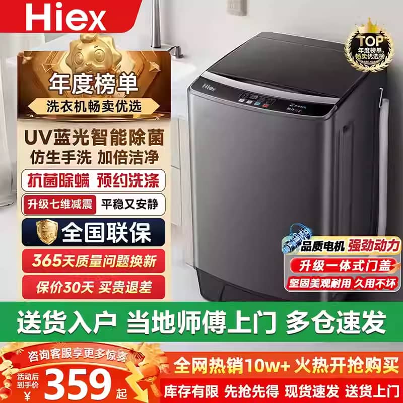 Hiex fully automatic household top-loading washing machine, 13/15kg large capacity, suitable for rental apartments, small size, wash-dry-spindle combo.