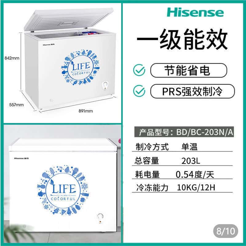 Hisense Freezer 203L Grade I Energy Efficiency Home and Business Dual-purpose Refrigeration Freezer Single Door Refrigerator BD/BC-203N/A