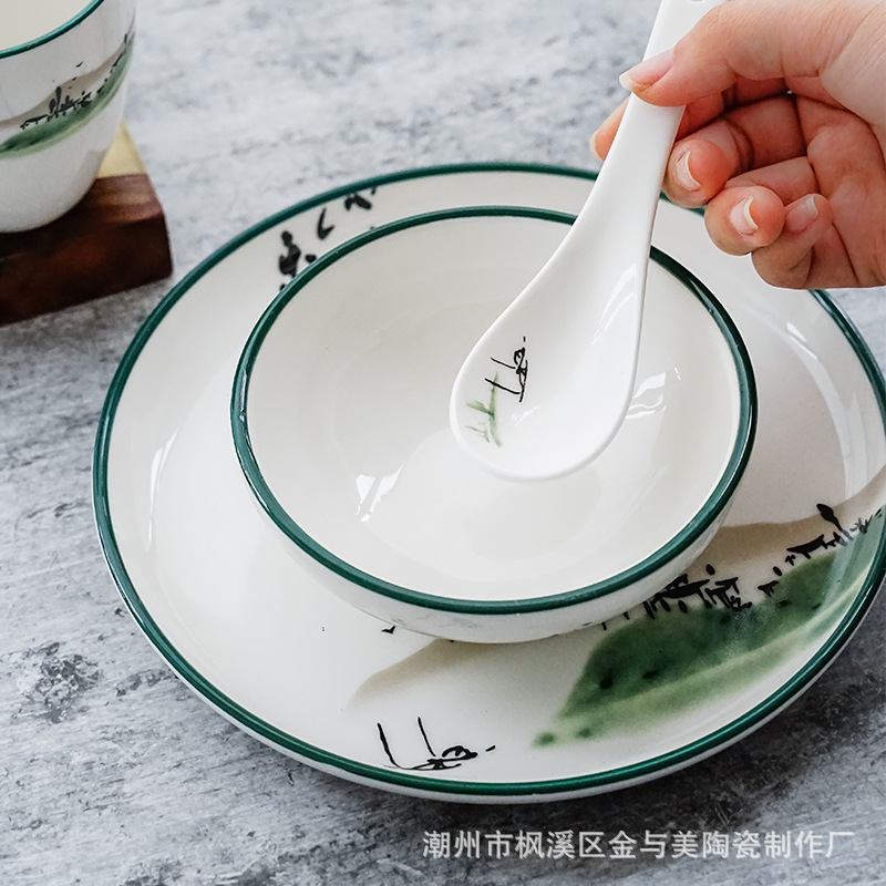 Hotel Tableware Four-Piece Set Can Be Printed with Logo Hotel Plate Set Ceramic Tableware Underglaze Color Plate