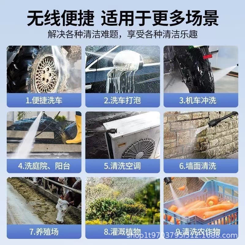 Household high-pressure car washing water gun wireless car washing machine portable powerful car lithium battery washing machine car washing artifact. 988 new high-pressure water gun 10-cell single battery + tool box + 10m explosion-proof pipes