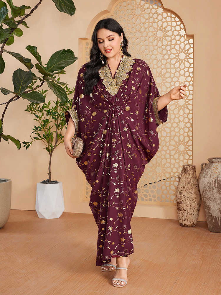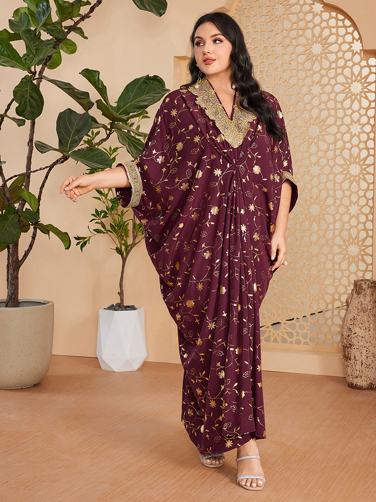Ky1030 Amazon Cross-Border Middle Eastern Long Dress Fashionable V-Neck Gold-Stamped Muslim Dress Banquet Loose Gown