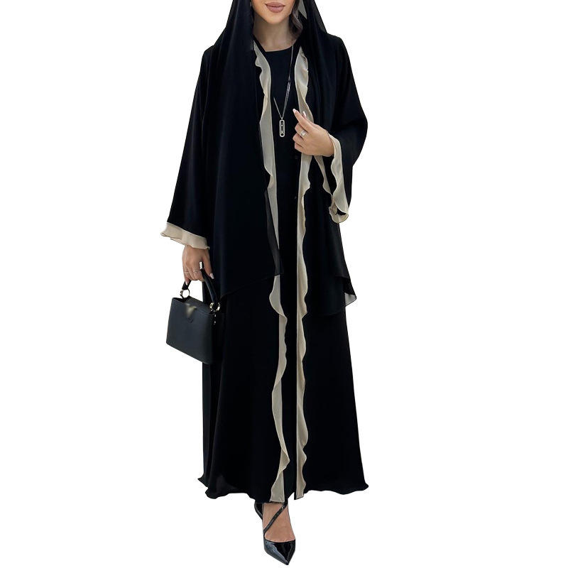 Ln179 Modest Turkish Ins High Fashion Ruffle Decorated Muslim Dress Abaya Cardigan