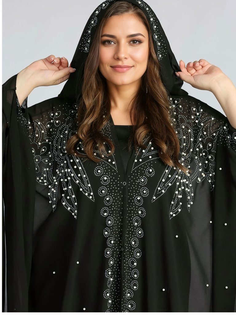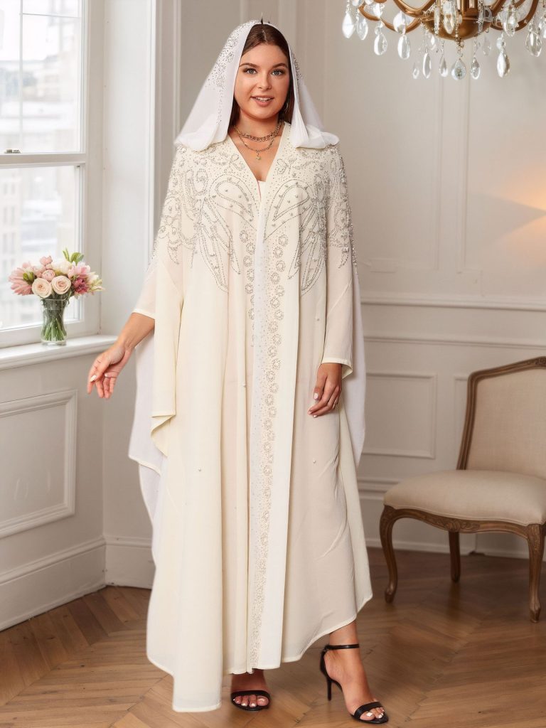 Middle Eastern Muslim Robe Dubai Beaded Abaya Robe Hooded Cloak Shawl Foreign Trade Amazon