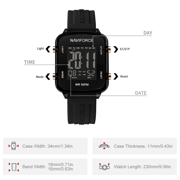 - Bold Digital Display: The large electronic screen offers clear time reading, making it easy to stay on track throughout the day. The vibrant digital display adds a futuristic touch to your look.