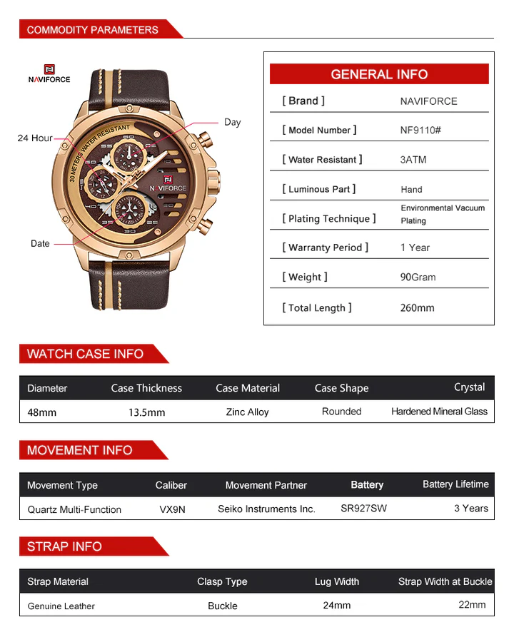 ◉ NAVIFORCE military waterproof watch, the perfect combination of sports and leisure, stylish big face appearance and multi-function, perfect match with jeans, T-shirts or suits;