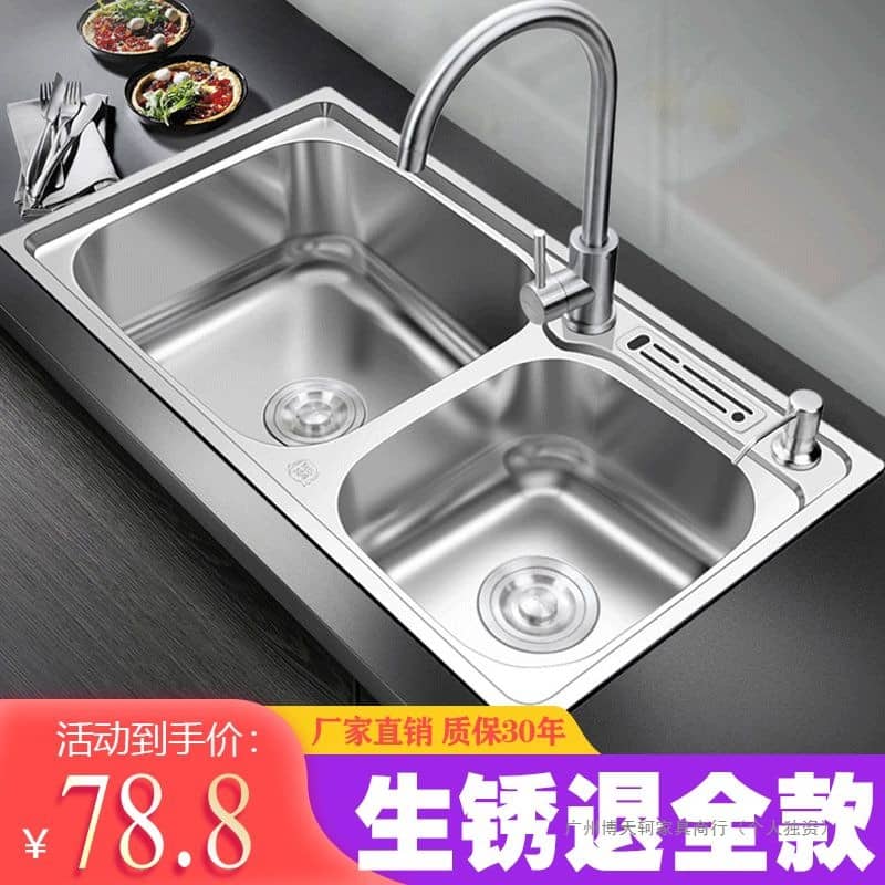 HomeHome & GardenBuilding MaterialsBasin FaucetThickened 304 Stainless Steel Sink Set with Knife Holder Brushed Double Sink Kitchen Sink Sink Large Double Basin. Flagship package (including a complete set of hot and cold faucets) – thickened 80×43
