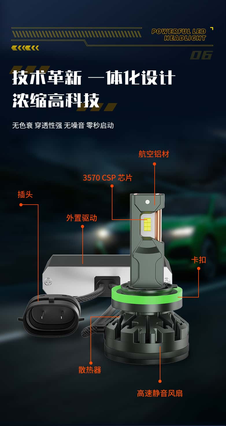 Yan Auto Led Headlight Dual Copper Tube High-Power 3570 Chip H7H4H11Led Front Car Light Direct Sales Store 9005